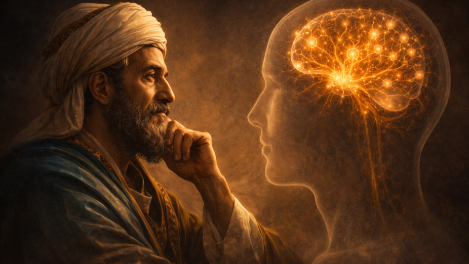 Görsel 1: İbn Sînâ’nın akıl, idrak ve bilinç üzerine düşüncesini çağrıştıran sembolik bir temsil. Görsel Kaynağı: https://www.linkedin.com/pulse/avicenna-soul-seat-reason-david-bovis-m-npn-thvde